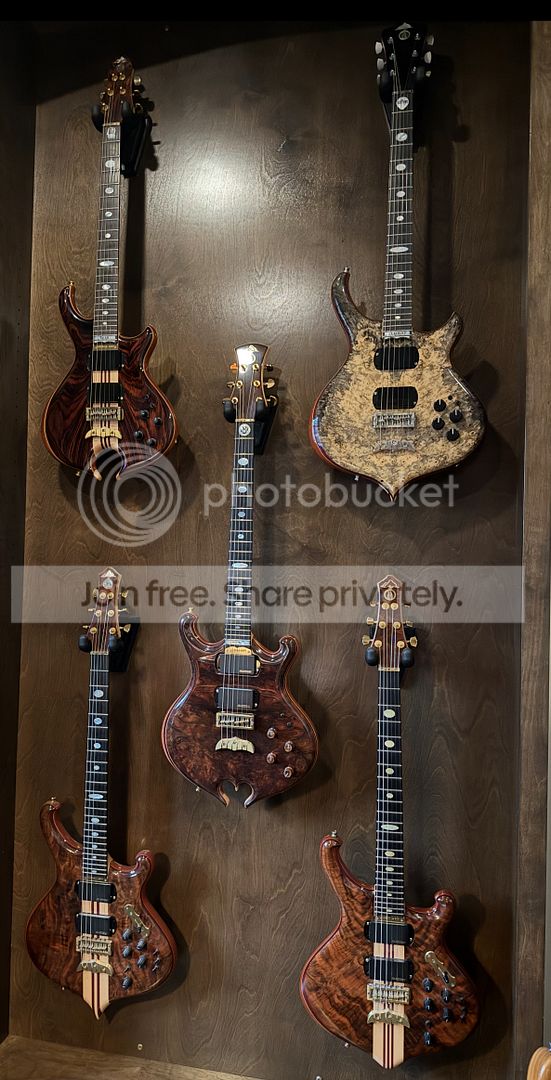Quote from: jalevinemd on Today at 09:37:46 AMHere is the first Little Darling ever made alongside some friends. The bottom two are the natural evolution of the design and incorporate my favorite features from the first three...including the wonderful curved horns that I first saw on a custom Alembic bass from the 70's.