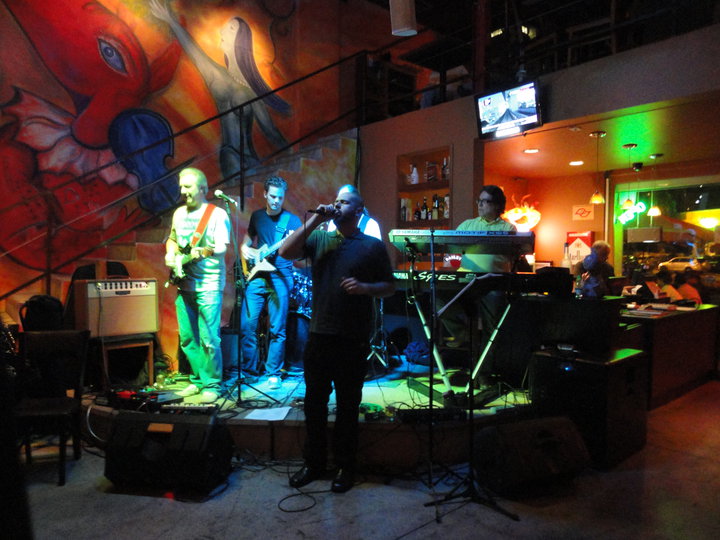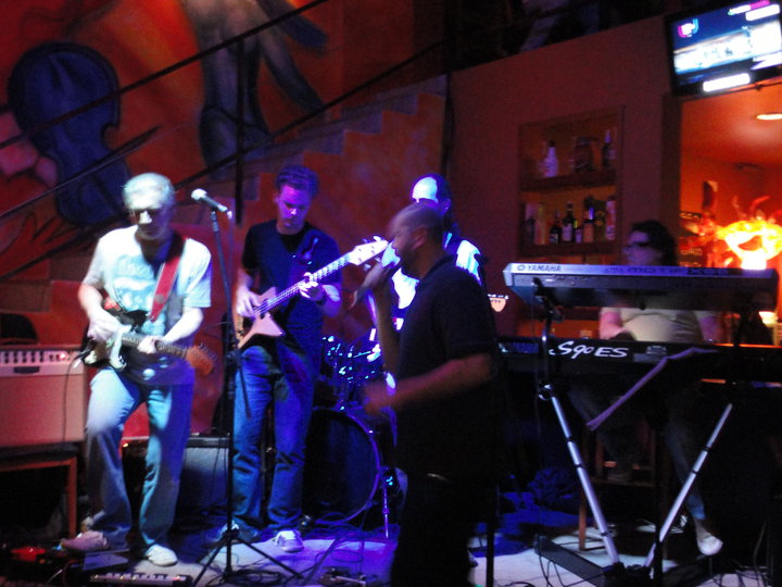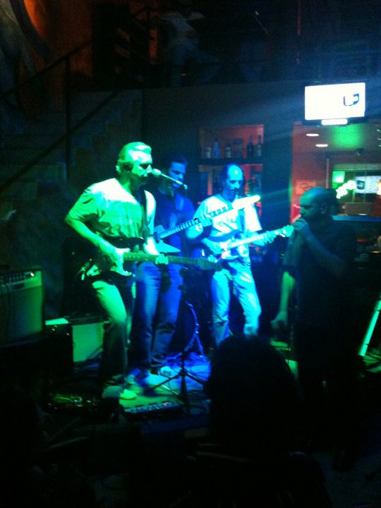 I had a gig last night and decided to post some pictures. It's a band I've just been invited in. We are the Red House, and it's all classic rock/blues covers. Pretty awesome, IMHO! This gig was in a new bar here in Sao Paulo that has an impressively small stage for a bar that has live music most days of the week (at least it was small for us, we are in 6...). I actually managed to play using only my Phil Jones Briefcase amp (it's on the left, in between the guitar amps...), that really surprised me, cause I thought it was not going to be able to handle but it did, beautifully.