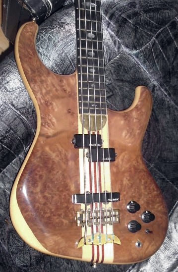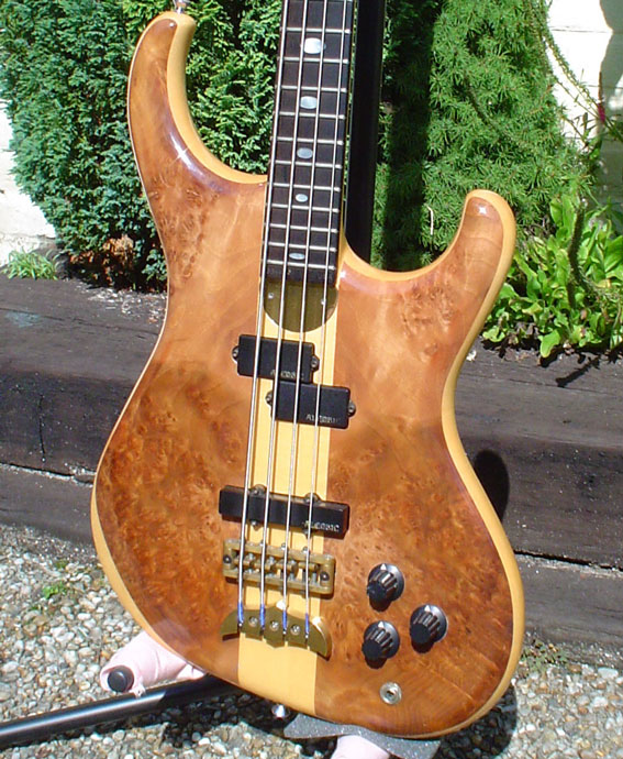 There it is. New pics, a bit better.  Elan 5 strings  with the original warranty card. Bought new in 1988 at Steve's; toronto. Serial num: 88H5062 date: 9-9-88  - two-tone burl walnut top  - maple body  - maple neck fully laminated purple heart, maple.  - chrome GOTOH tuners  - brass bridge and bird tailpiece  -P and J pick ups. 3 knobs 1 q switch.   Michel, Montreal