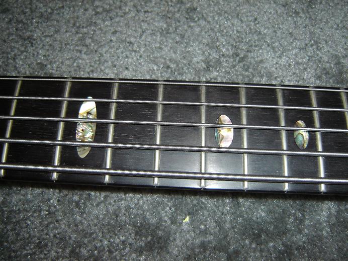 Also, this is NOT the bass from the link above.  As you can see, that bass had a heart-omega cut-out, wider string spacing, Ziricote top AND back, and what appears to be black (tahitian?) oval inlays.