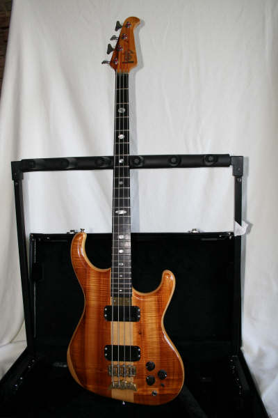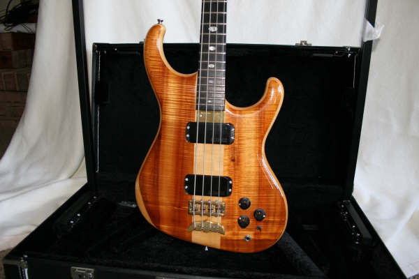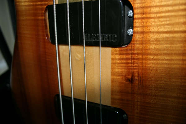 Also selling my second Alembic.  This one could have been the end of the habit--it's that good--but enough followed that it's time for this one to get to its next home.  If you want information on it, it's SN 90H5734.  I think I once did a request on it, so you should search the site before checking with the factory.  All in all in very good shape.  A few blisters in the finish; I've tried to show the worst of them in a picture (how the projectile got through the strings, I'll never know).  Also the usual headstock nibbles.  I'm looking for 1350 (US$).  First acceptance gets it.  I've had exchanges with a club member in Europe about this.  He's the one exception to the first come first served condition; I'll email him later and if he wants it, it's his.  Buyer pays for professional packing, shipping and insurance.  I don't have a HSC--I have one of those firm soft sided cases for it--not in great shape but it does a good enough job.  I'll be on vacation this week.  Will do my best to keep track of replies and postings, but if you don't hear from me, I'll be back to you by Thursday.