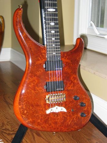 After much debate, I've decided to sell the guitar that started my relationship with Alembic. This beautiful 2001 Orion has seen one day of playing since the Little Bear arrived. I imagine that quickly will go to zero after the new custom I'm about to start is completed. I don't mind the other guitars collecting dust, but it seems a shame not to play this. Previously owned guitars don't come up often and I figured it would be a great opportunity for anyone interested. I am not the original owner. My understanding is that it was bought by a collector and never really played. The guitar looks as if it came home from Santa Rosa yesterday. It has been kept in a climate controlled room and has never left the house. Never been gigged or even touched by anyone but myself since winding up in my possession. To date, it's the only burl rosewood Orion guitar that Alembic has ever made. There is a single purpleheart accent laminate. The rest is standard. The color is a much deeper brown than the pictures suggest. If anyone is interested, or you know someone who may be interested, please e-mail me. I will not spearhead another debate on the Club as to an instrument's value. I only know what it is worth to me, what I paid and what it would cost to replace. I will not be offering this on eBay. If it doesn't sell here, it stays with me. Regards, Jonathan