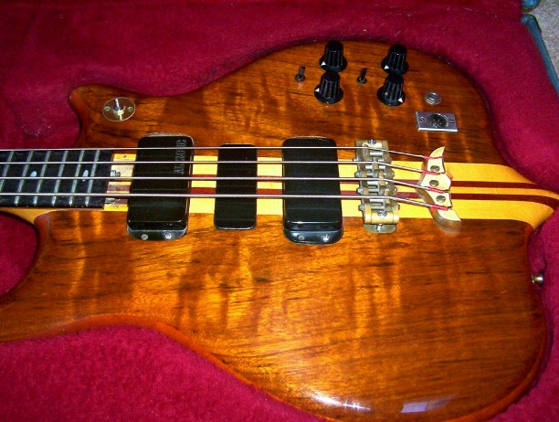 and here again, another. The selector switch is missing as you can see. It just slowly got more and more play in it as the years went by, till it finally turned 360 degrees without turning the shaft, so off it came. The finish has some checking, of course, after 25 years, and there are a few scratches here and there...mostly on the back. But I have babied it pretty well and it is still a solid fine instrument. I cannot play any longer, and I wont let it gather dust. I would rather to try to sell it here than on E-bay, because I think most of the folks that gather here get what Alembic is all about.