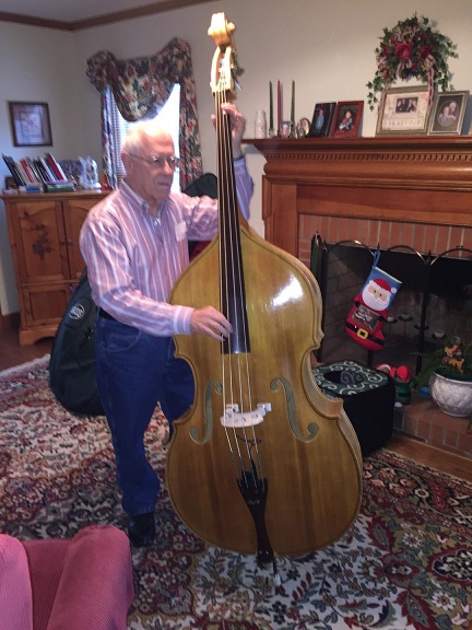 Just to finish the story... Dad went back down to the Piedmont region of North Carolina today and took the bass back to visit it's original owner, his cousin Buddy Yearwood. Cousin Buddy seems to approve of the restoration... Dad sent me these pictures a minute ago.