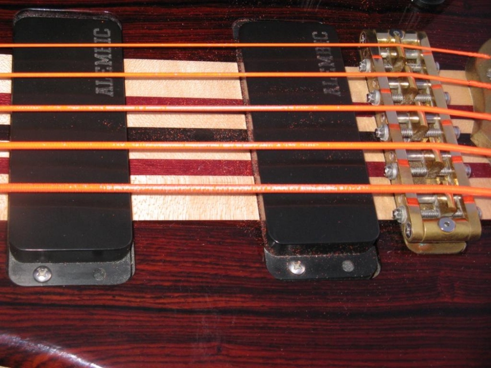 Well I'm sad to say that after only 3 hours of hard gigging the orange strings are already showing sign of flaking between the pups (not quite enough to photograph yet). No marking on the greens on my fretless rogue but the MK gets used for about 90% of a set. I'll admit that although I only play fingerstyle I do get pretty aggressive and dig in pretty deep. I didn't notice any appreciable difference in tone between these and the DR coloured strings I took off but I think they may have slightly more tension than the old strings. Possibly just due to them being newer but the action on my fretless seemed around 1/8th inch higher than usual. I only got the strings on thursday so I didn't get much of a chance to check my setup before the gig.