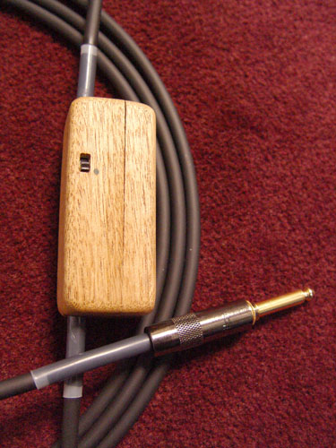 Just flashes once to confirm the battery is good.  It's all made in-house. It's not for active instruments of course, it's for a simple way to get the benefits of a preamp (higher output, isolate capacitance of cable, frequency response of guitar not affected by volume) in a all-in-one package.   Of course you can put a Blaster onboard and use any cable you want, but for those those that have vintage instruments where modification isn't desirable or large collections where it's impractical this is a good option. 12 foot is $375, 20 foot is $395 retail. These will be available from our authorized dealers and on our webstore.   We tried it with a variety of passive guitars and basses. What I observed was a notable increase in gain. On Tony's Seagull acoustic with piezo pickups, there were suddenly lows and the highs were pleasant sounding. It was a huge difference. On Jack's Gibson bass (tuned BEAD), what was once muffled sounding, was still deep, but there was definition and some of the transients in the attack were preserved.   There's more basses and guitar visiting us today. I'll post reactions here.