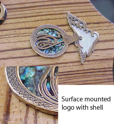 logo style price bronze $75 sterling silver $150 surface with shell $575 inlaid with shell $1150*