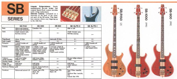 The SB900 is nice as well, two pickups, passive, Brass bridge/nut, five pieces slim/narrow thru neck... I know a lot about the SBs, once I had the SBR150 which was the very top of the range with zebra wood and dual pickups active electronic + ebony finger board, and a wider neck, they do weight a ton some of those SBs...