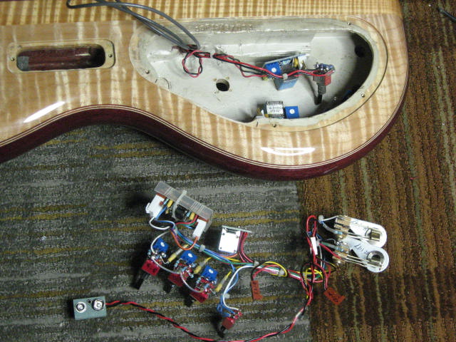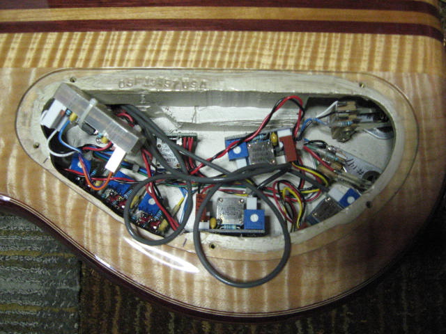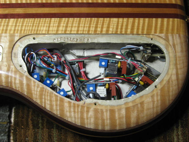 So after all that I didn't have time to test it, and ran off to rehearsal on Sunday.  Needless to say, the scream of Further was heard prominently throughout the land!  The new harness works perfectly, and my volume control is extremely useable now.  This is a testament to the superior design of the harness.  Not that I didn't wish to test it before rehearsal, more that I was confident that everything would work great.  There was an ease of reassembly due to the plug-in nature of the components; everything is pre-placed and wired so all pots and switches just slip in their holes!  More happened than the Volume control too.  Previous to the gut-come-out project when more than one pickup was on, the output gain would increase.  I always thought this was a normal characteristic, but I got a call from Mica letting me know there is another option.  The gain increase was indeed by design (she said Ron thought it would be cool) and indeed it did add an item of controlthat worked well.  However after the upgrade using more than two pickups would NOT increase the gain, and make everything more stable (unless I purposly set the pickups hotter than one another).  After a lot of discussion with her (thanks Mica) I decided to get the upgrade.  I do use gain sensitive equipment.   So now with the gain output at a normalized level, and the volume control working perfectly (I cannot stress how much I love it)  I feel all in control.  Woo-hoo!  The Alembic "Further" refined my guitar into it's pure essence, and I say THANK YOU for that!  They supported this issue free of charge, I only had to pay shipping to the factory.  Best $5k I ever spent (on the guitar that is  )  Rock on!