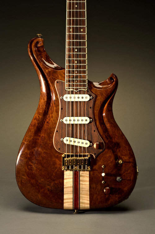 and there is the one from  But I don't recall seeing of any pictures of recent models with elaborate carvings like that. There is the johnny Winter Alembic guitar.