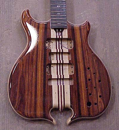 Here's your bass in spray, just about ready to get the body inlay. James is scheduled to start the inlay next week.