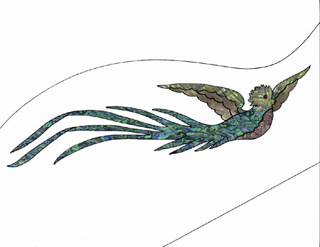 Please be forgiving of my Photoshop skills! When your bass is finished, the wood will look darker, and the contrast between the inlay and the Coco Bolo will be stunning. Here's a photo of your bass today, with the proposed inay in place: