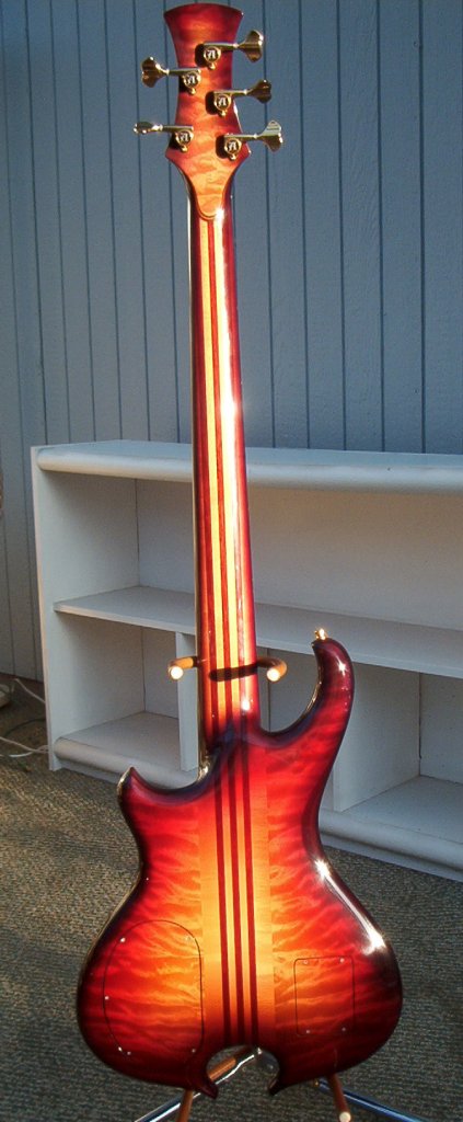 Mica, I've been staring at the pictures of Pinot you published last week, and I continue to be astonished by that finish. When you buy a Fender, or Gibson 'bursted instrument, you get your run-of-the-mill sunburst. That Wineburst, I'm assuming Bob did, looks more like a Thomas Kinkade study in light, the bass just glows and radiates light and energy from its center. I'm sure that as is often said here, It looks better in person.