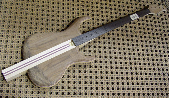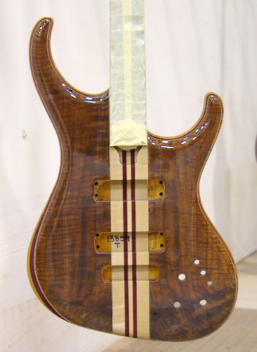 I think my mom may have already told you, but your instrument got lots of attention from Udo when he visited last week. He's writing an article for Bass Professor magazine in Germany, I'll be sure to send you a copy when we receive them.  This week: Steve's bass enters the finish department, then it really starts showing off that flamey figure.
