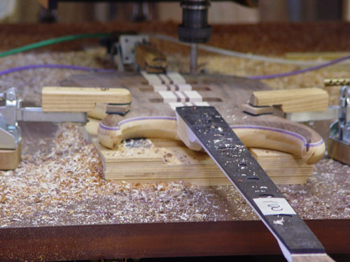 Seeing the photo of the CNC in action reminds me of my first visit to the factory. I remember thinking at the time that it would be really cool if when they finally got around to doing mine, they could sweep up a nice assortment of wood chips, and send them to me in a bottle.