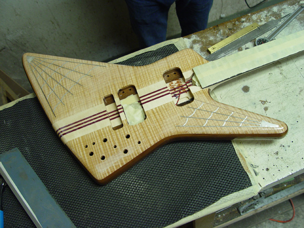 Half-way through finish and most of the sterling silver inlays in place: