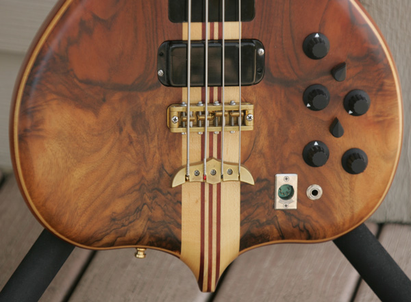 2023 Mark King 5 String, Buckeye Burl via Will Gunn Guitars. With added 5-pin jack