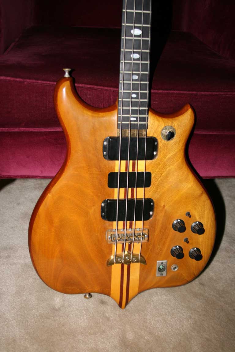 Greetings all: Here's my shameful story. Way back in 1987 I came upon this gorgeous Alembic Series 1 when I lived in Atlanta. I was a student at Emory University at the time, and needless to say, without deep pockets. Yet I had always longed for an Alembic after being hooked by the sound of Andy West and the Dixie Dregs. The bass was owned by a musician in need of some dental work. He had no insurance, and alas was forced to sell his bass to help pay for it. I was able to talk him down from his asking price of $1200 to a mere $1050, an event that has brought shame to me every time I've thought about it. But, I wasn't exactly in a great position to provide charity at the time. I've played the bass as my main instrument for years, but have (shamefully) take it for granted. I bought an Ibanez six-string two years ago, and my prized Alembic has sat in its case ever since. I am not a frequent player, but it's still a sad fact of my life that I have not cherished this instrument the way I should have. After finding this forum I have discovered that I am part of an elite community of Alembic owners, and it has given me a great deal of inspiration. I'm proud to share some pics of this bass with you. I'll be glad to post the serial number of this instrument (if I can find it). Some notes on its history: I purchased it from a guy who had also bought it used. The original owner lived in the Atlanta area also. In 1990 a guy named Kurt (his last name escapes me) took it and set it up for me. He did a fantastic job with it- took the action down to a silly height with no buzzes or problems whatsoever. Then in about 1995 it started sliding into inactivity. Enjoy! Notes: Walnut top/back, bubinga (?) headstock veneer. The smudge near the battery cover plate is from where the padding inside deteriorated; it can be easily cleaned off. On the front side photos the top seems dusty or matted; this is some kind of photo artifact and is not present on the instrument.