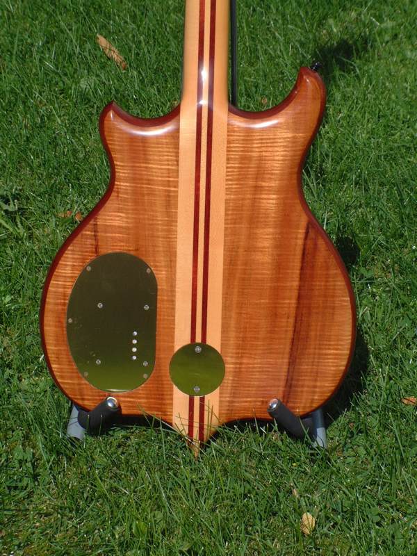 Note to Bob:  My old zebrawood Tobias has wood that changes kind of like tigereye (rock) does.  It is amazing when you turn it in the light.  My model was supposed to come with a zebrawood/wenge/zebrawood/wenge/zebrawood body lamination, but he did not lam the back, as this particular piece of zebrawood is so beautiful, especially in the back.  I do not know how he book matched it at the angle of cut he did, but it is spectacular when played with in the light.  So, I am sure it has to do with the way the wood grain was cut, as flatsawn does not do this at all.  But I am no expert on woods, that's for sure.  Looking at his bass, Mike sure is though.