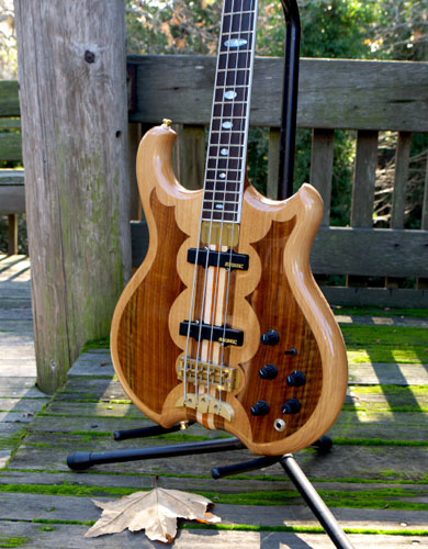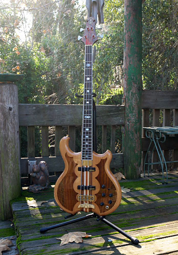 here. This is the only bound neck Alembic I think I have ever seen. It really sets the bass off. With the EMW electronics, and J pups, this bass has a nice palette of sounds. And it plays like greased lightning too.