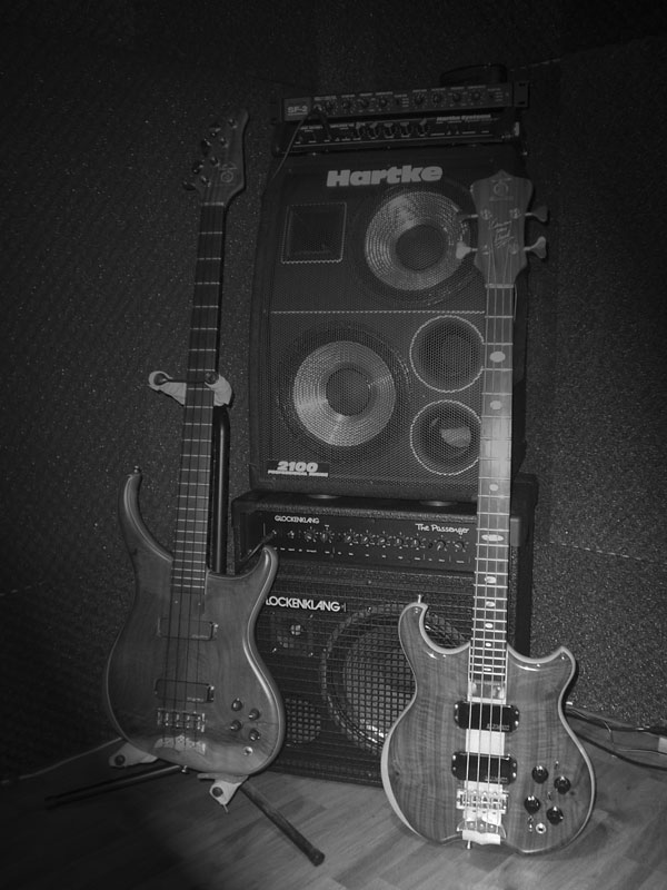 LOL! Dave, you're absolutely right, but I assure you that the original EVH body shape is one of the best shapes for doing the notorious #1 'thing you shouldn't do with your bass'. In the brilliant book 'American basses' I've actually read that the original standard point body shape was designed especially to force people to place the bass in a stand (!) because of the huge amount of broken headstocks of (other brand) instruments Alembic was offered for repair in the early days. You'll be glad to know that normally the EVH and the Orion aren't even on the guitar stand, but in a case and gigbag respectively and that this setup was for photographic purposes only. I really wouldn't want anyone to think that I'm cheap (we Dutch strangely enough have that reputation, especially with our Belgian neighbours - are you there Paul TBO?) Thank you very much for your concern and the first really good laugh of the day!