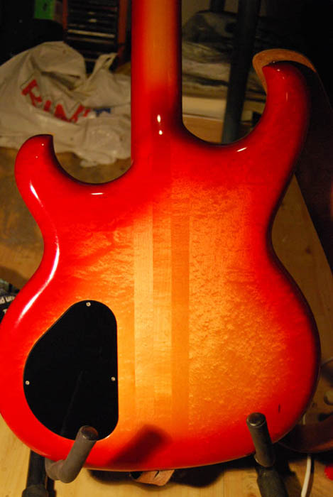 Let's hear it for the colored basses! I've never seen a sunburst on a Spoiler. Beautiful and unique. Congratulations. Enjoy the growl.