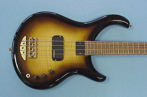 Custom Excel bass painted by my uncle Bob Nelson. He started with an all-over light amber tint, then a darker amber, then brown and finally sheer black. As usual, the bass looks soooooo much better in person - the subtle blend is hard to capture on film.