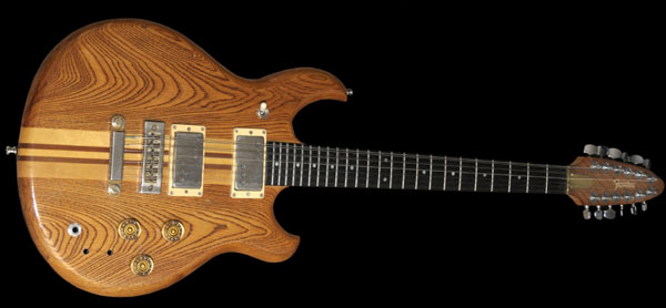 Very Alemb-ish, neckthru, maple-capped mahogany wings, sustain block underneath the bridge.  It had those Grover-copy, round-round button Gotohs, brass bridge, ebony board.  We actually had to raise the action:  It played perfectly, but the action was incredibly low.