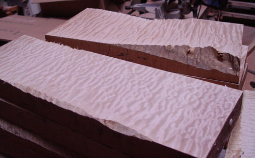 Wow, I was stopped in my tracks at the sight of some new wood coming in from our main Maple supplier this week. Here's a peek at the Quilted Maple: