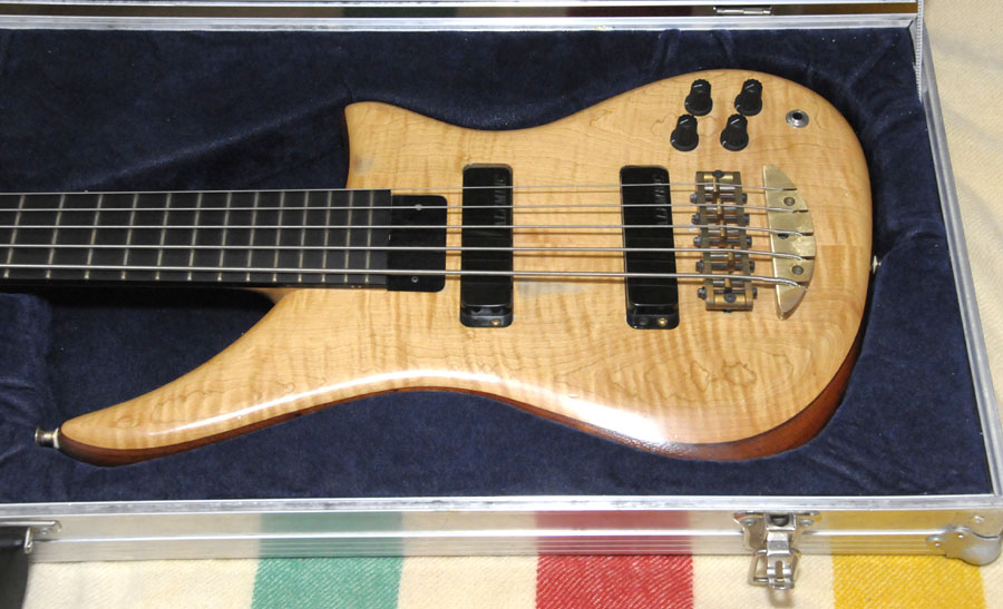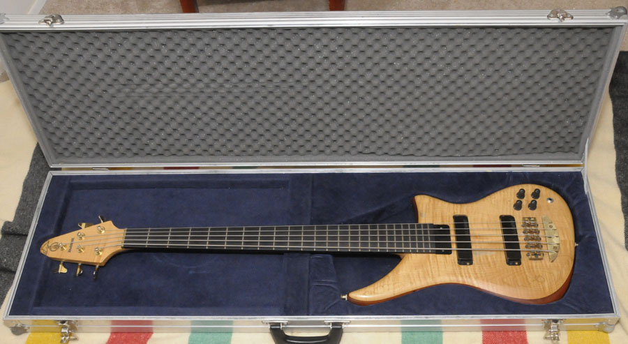 I am thinking of selling my 95 5 string Epic. I have had it almost 5 years and just hardly ever play it. It sounds great and functions fine. It has honest player wear and was played professionally before I got it. There are 2 spots on the top where the finish has worn through from playing and the back of the neck has small dings and wear from playing and sitting in guitar stands at gigs that you can feel, but I don?t find them objectionable. The fret board is fine and the frets have many-many years of life left in them. The action is great and it does not buzz. These basses are built super solid and made to be played. The neck has a nice solid volute to protect it and the bass balances well. It has a nice after-market case that I spent a lot of time and effort custom-fitting to this bass and I am very proud of the job I did. It is not the first one I have done and I have gotten quite good at doing it. The case is a little body heavy because I did not relocate the handle though (case butt dive?), but it is not a problem to carry. Price is $1,100 plus shipping and insurance to USA only (no exceptions ? please do not ask). It might take me a few days to scrounge a box to fit it from my local Guitar Center. PayPal is the way to pay. This would make a great bass for a pro player who gigs a lot and wants that Alembic tone! Here is my posting in the showcase area when I bought it: