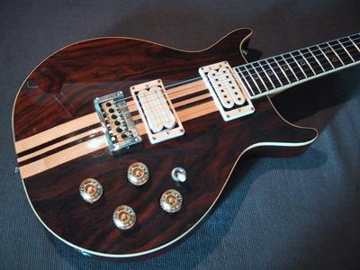 The body sure does have that 'hippy sandwich' look, but the headstock and hardware (including pickups)don't. Body has a profile similar to PRS but the headstock looks almost Dean-like.