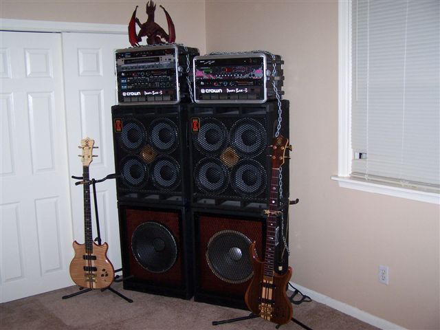 I started a post in the Fun Stories section on the 2 1X15 cabinets my brother and I made. But I realized I should have included the Alembic's I get to play through this rig since this is their site and we all love to see pictures of Alembic Basses, right. So I took another picture of with my basses and also included the other rack. Can't wait for the chance to really turn this thing up now that the new cabinets are done