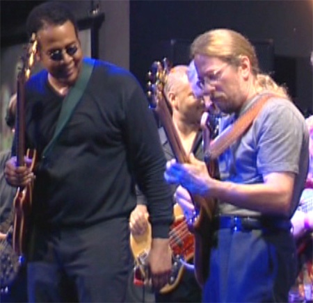 Ed, I had a really good laugh about that. I can't see how my name can even be included in the same posting as these bonafide greats. My technique is more than likely a by product of something else I'm trying to do such as keeping the bass from sustaining or sounding notes that I don't want. i'm glad you think I'm doing something right. I don't have any pain when playing so I guess I have worked out what works for me.