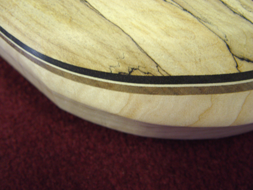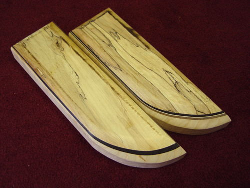 Fir this projeect, we needed a visual example of how the different thicknesses of accent laminates would look, so Chip made these two glueups to help Erik decide: