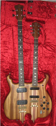 It may be the only Alembic double-neck 4-stringbass/6-string guitar in existence! In any case, Alembic did an outstanding job... including inlaying my initials, "G de M" in the headstock of the bass!