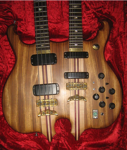 Wow - I don't think I've ever seen a bass-guitar doubleneck with the bass on top.  Very nice instrument (& the bubinga guitar is yummy, too).