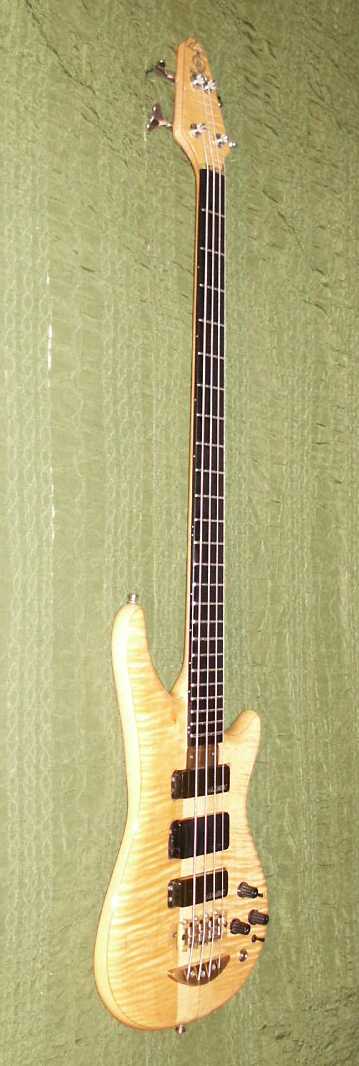 I just got her back today after a long wait; and she sounds great!  Three position Q switch; and a three position pickup selector switch.  Plus the regular volume, pan, and filter.  Apparently, the bridge pickup is always on and routed to one side of the Pan.  The selector apparently chooses between the neck, the mid, and what appears to be the sum of the neck and mid.  That choice is then routed to the other side of the Pan.  Lots of tone choices!  They also gave what was already a really nice neck the satin feel treatment!  I couldn't put it down.  Oh, and we added a sustain block too!  I'm going to play with the pickup heights some tomorrow.