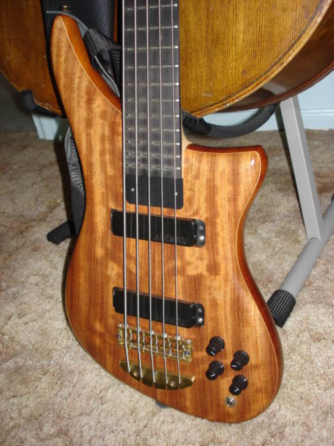 On the left is my 95 Epic 4 with a flame maple top.  On the right is my new 98 Epic 5.  It has a Bubinga top and burl Bubinga headstock laminate.  It's wonderful to finally hear that deep, rich Alembic low-B.  The prop is my German upright, circa 1910.