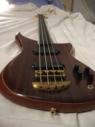 Hello everybody, This is my new Alembic Epic fretless 4 string,it has a Vermillion veneer with Maple accent and a Mahogany body. The neck is Maple with an Ebony fingerboard. I'm verry glad that I've found this bass in the Netherlands because alembic basses are verry hard to get down here. I have one question: witch strings are the best to get a kind of jaco sound out of the Epic? keep it grooving y'all