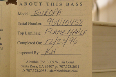 I saw somewhere in this Europa section about protruding frets, my bass had this issue but magically cured itself! This bass never had a 30-Day Setup or any going-over. Short of neck adjustments, pickup height, and bridge adjustments, I have never needed to change anything from factory setup. It has only been played about everyday since it was brand new. :D