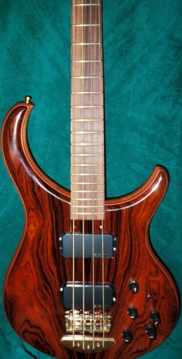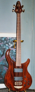 Born 10/11/04 S/n 04X13338 32" scale Mahogany body Coco Bolo top Maple & Purple Heart accents Pau Ferro fingerboard 2 Fatboys East Meets West electronics