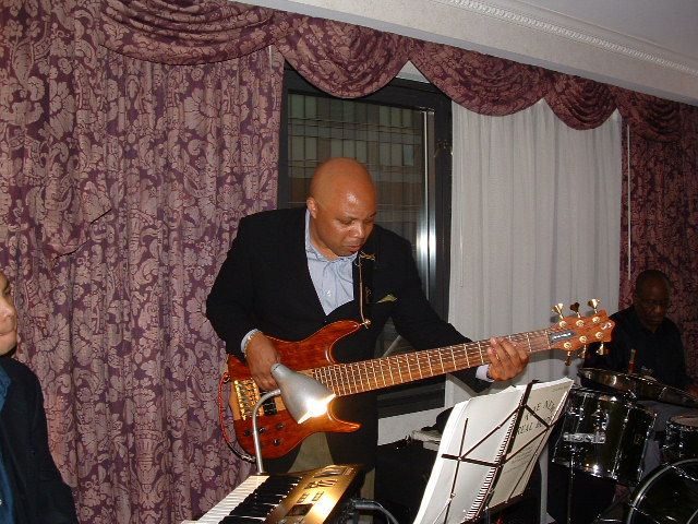I have been doing a few gigs lately. Opened up for Brian Simpson about a week ago. It was a sub gig for me but still pretty cool. For those of you who may not be familiar with Brian, he is a smooth jazz keyboardist who plays with Dave Coz and a few other Smooth Jazz acts. On the same bill was Paul Shilts Weimer from Down to the Bone. Anyway even though I don't play Alembic bases right now I turned a few heads when the dual Alembic F1X pre-amps were unleashed. For those who are interested I included a link to some photos. By the way I am the one playing the Lakland 5 string.