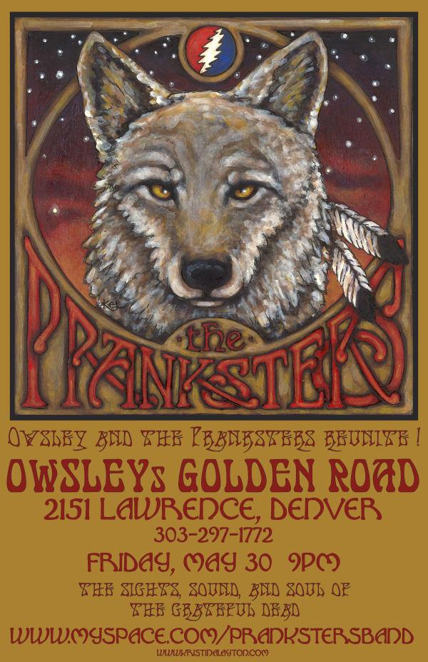The Pranksters will be performing our first show ever at the new and very kind Owsley's Golden Road in Denver tomorrow night. We're sharing the stage with Stanky Pockets to guarantee a night of non-stop music and festivities. Come on out get your boogie on! Fire it up for the Grateful Dead!