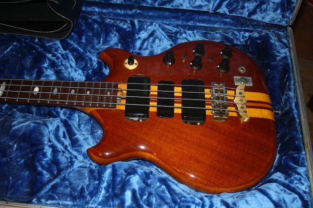 The bass did have some modifications the original owner had done in 1983.  He updated the hardware, the circuit, the pickups, added the master volume, and had a crack in the headstock repaired.  Mica of course had all the info that confirmed what I saw on the bass.  The owner also told me he had the neck shaved at some point, A Carruthers refret,  that he replaced the pickups a couple of times due to wear, and had a few circuits replaced as well over the years.  The good thing is the bass looked exactly like it did when he sold it back in the 80s.  It was extremely clean.