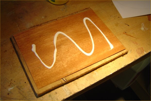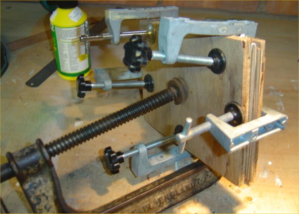 Graeme..no he bought me that last year..I always seem to fix his car for him. Anyway..the next phase Removed plate from clamps...an afterthought was that I should have put clingfilm between the scrap wood, the glue had gone onto them, managed to prise it apart with no damage using a Stanley knife