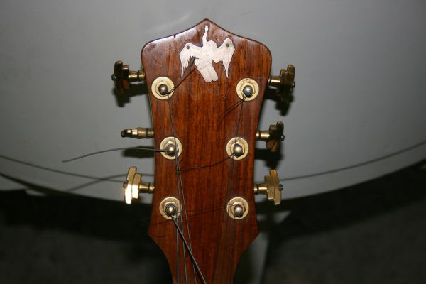I wonder if this was a shop night instrument.  That headstock also looks vaguely Irwinish, so I would guess that it would have been made sometime after Garcia made Irwin famous.  Too bad the guy won't share a gut shot.
