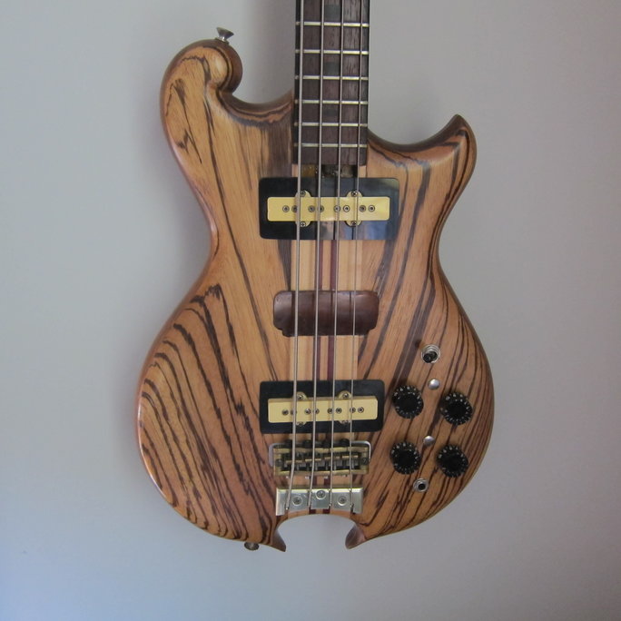 I did my research and then took the risk and bought this bass. It turns out to be exactly what I thought, a very early Mark Johnson! I spoke with Mark today and he is going to go through his archives and find his original records on it. It is one of the best playing basses I have ever played. The original Alembic pickups were obviously changed but were included with the bass. It actually sounds great as it is but I'm sure wit will sound better with the original pickups re-installed. Just amazing craftsmanship all around on this one. The ebay photos don't do it justice at all. Mark told me that the peghead logo is actually a winged Pete Townshend! I can't believe the deal I got on this amazing bass.