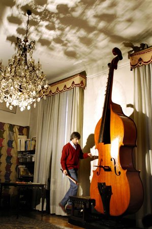 Dang! He's already up one step and it looks like he still wouldn't be able to reach first position after the next step! Is there a hidden third step? Was the house built around the instrument? Has anyone seen my lower jaw?
