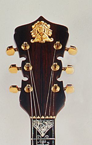 In this photo of the peghead, you can just make out that there was something there, but it wasn't an Alembic logo.