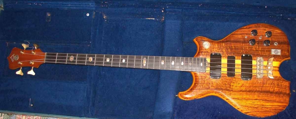 March 22, 1983, so 26,5 years old. Had a  major accident in her early years when a van drove right over her. Supposedly a roadie had placed the case or bag against the tour van and it only took a little bit forward and backward to hear some sounds one wouldn't want to hear coming from an Alembic. The headstock, neck and body were cracked but electronically there were no problems. I've heard this from a reliable source, who originally ordered and sold her, and looked after the repairs. She disappeared from view until I rescued her for a very pleasant price in a pawn shop, now 5,5 years ago. Foolishly let her go much too easily too soon but I was able to keep track and eventually managed to buy her back 2 years ago. Now, and especially with stories like that attached to her it's hard to imagine that I will ever be living a life without Blondie being close by.